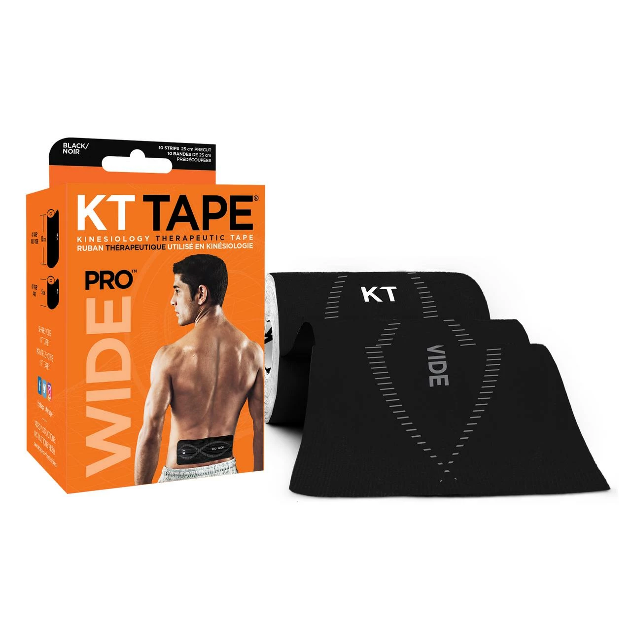 Need support for your lower back or larger muscle groups that will endure your toughest workout? KT TAPE® PRO WIDE™ is just what the trainer ordered. It will help relieve pain and provide support exactly where you need it.* KT TAPE® PRO WIDE™ will stay in place through multiple demanding workouts for up to seven days. It will stick with you in the harshest conditions including daily showers, humidity, cold, even in the pool. KT TAPE® PRO WIDE™ is performance engineered to work in the harshest environments. It’s the only 100% synthetic nationally branded kinesiology tape, re-engineered with stronger adhesive, to outlast anything you can throw at it.
