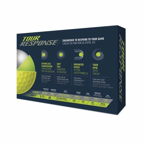 Featuring a 100% urethane cover, Tour Response delivers an ultra-premium feel at impact while also providing high spin rates around the greens for pinpoint precision.