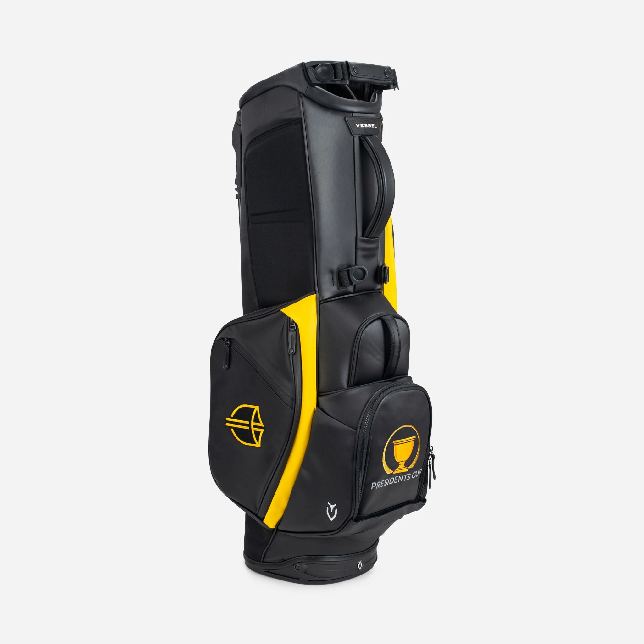 This limited edition Player III golf stand bag is part of the 2022 Presidents Cup Collection. Crafted to match the golf stand bags that the International Team will carry on course, this bag features a black and yellow colorway and boasts the international shield logo. This limited edition golf bag is the perfect showpiece, collector’s item or special gift for golf fanatics.