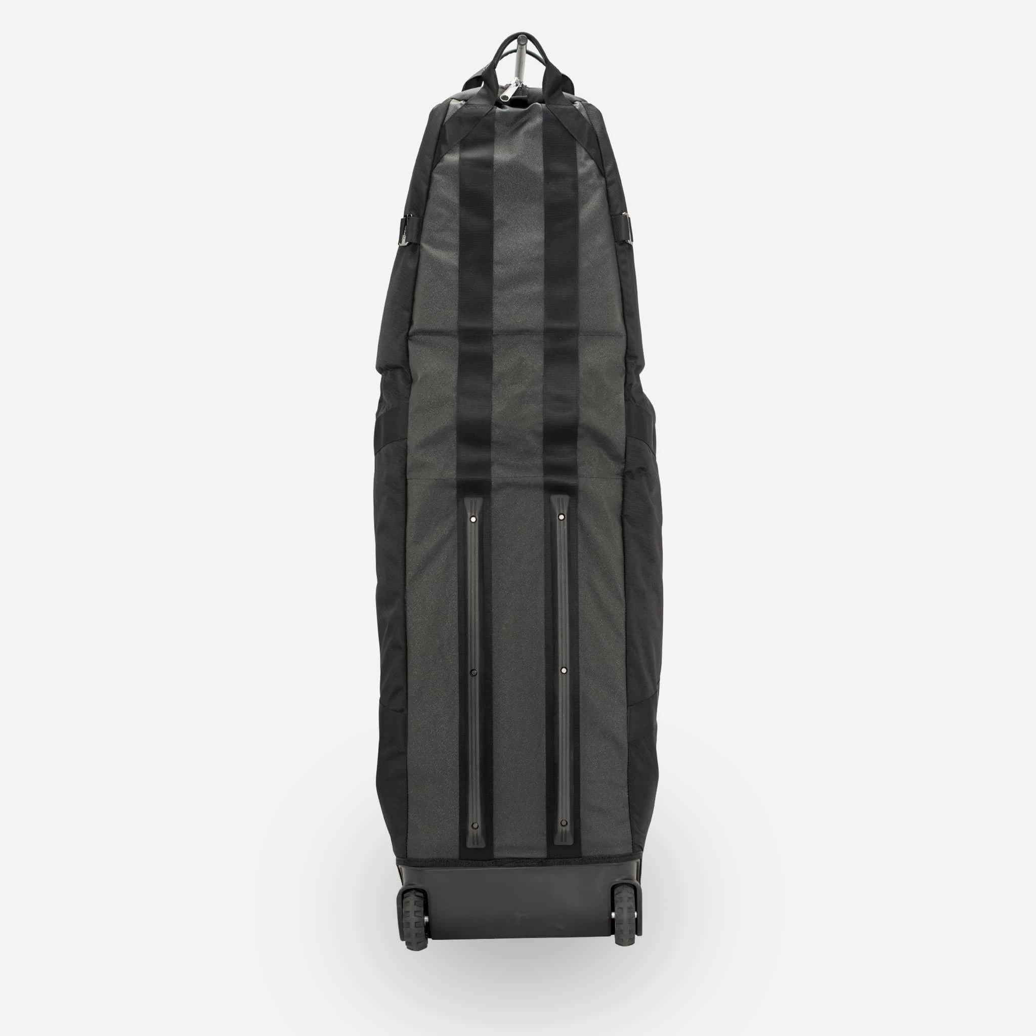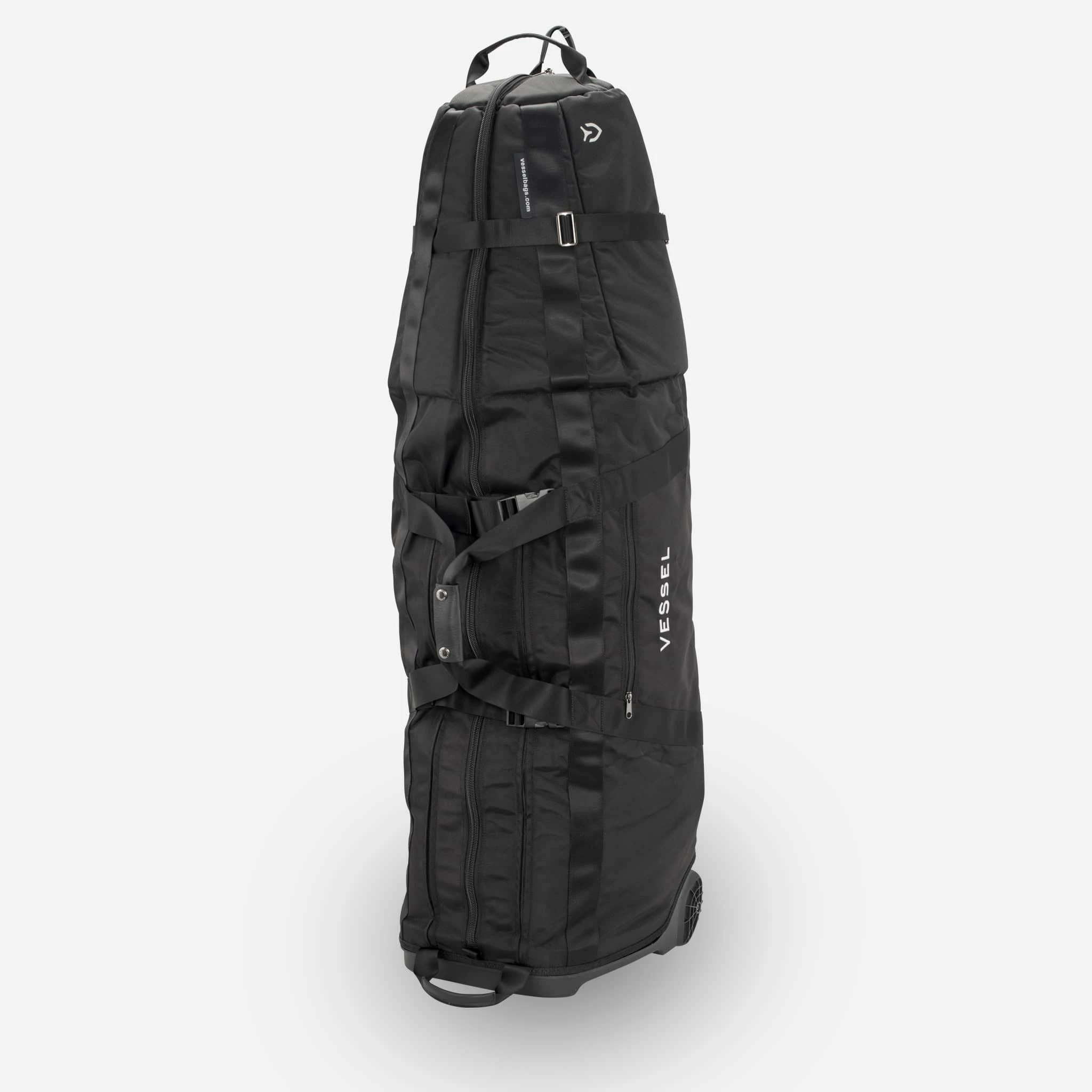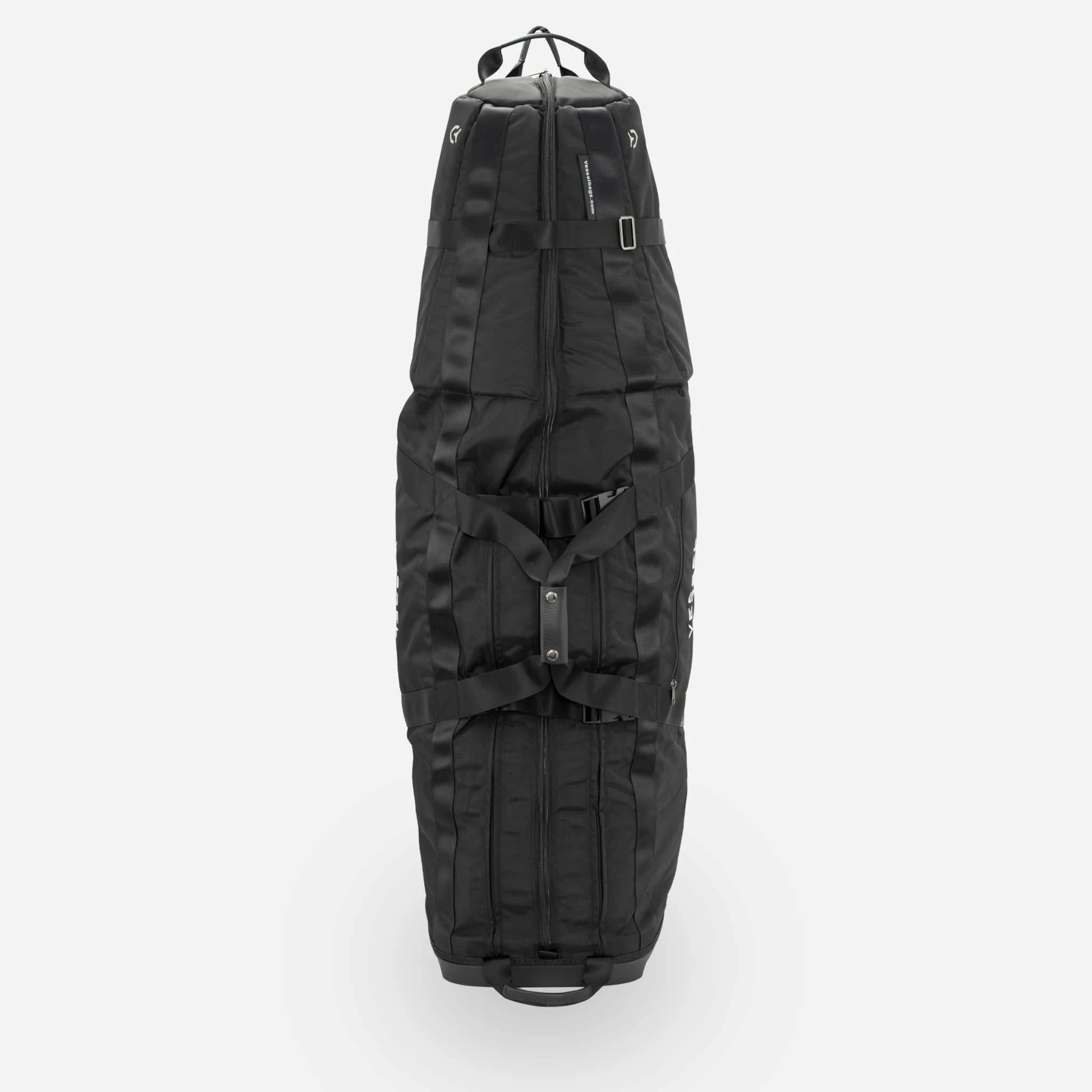 Experience a better way to travel on your next golf trip with the Golf Travel Cover. Crafted from tear-resistant 1680D ballistic nylon, this travel bag was built to last. The expandable main compartment is equipped with a self-correcting zipper that runs top-to-bottom for easy packing / unpacking. Three compression straps ensure a snug fit while a thick-padded top protects golf clubs during travel. This bag features an integrated wheel system and leather-lined handles for easy transportation from the terminal to the golf course. Our Golf Travel Case was designed to give you long-lasting protection for your golf investment.