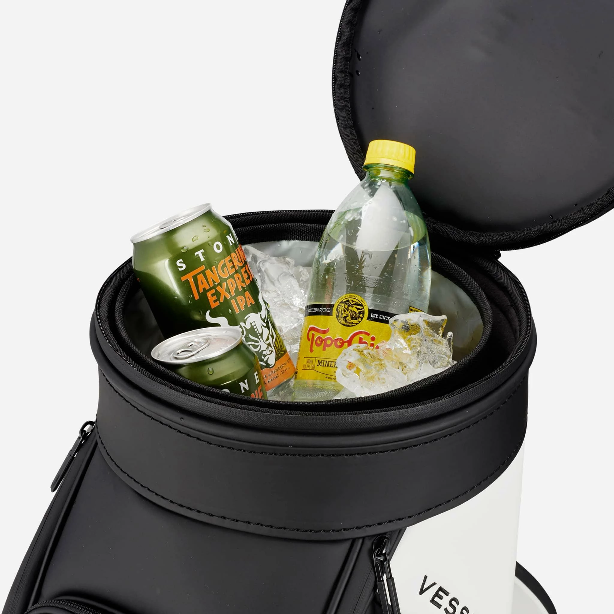 A versatile cooler/stool designed for the driving range, backyard, beach or anywhere you want to sit down and enjoy a cold drink! The insulated inner compartment keeps ice cold and a structured top with padding gives you the best seat in the house. External zip pockets keep everything else accessible and dry.