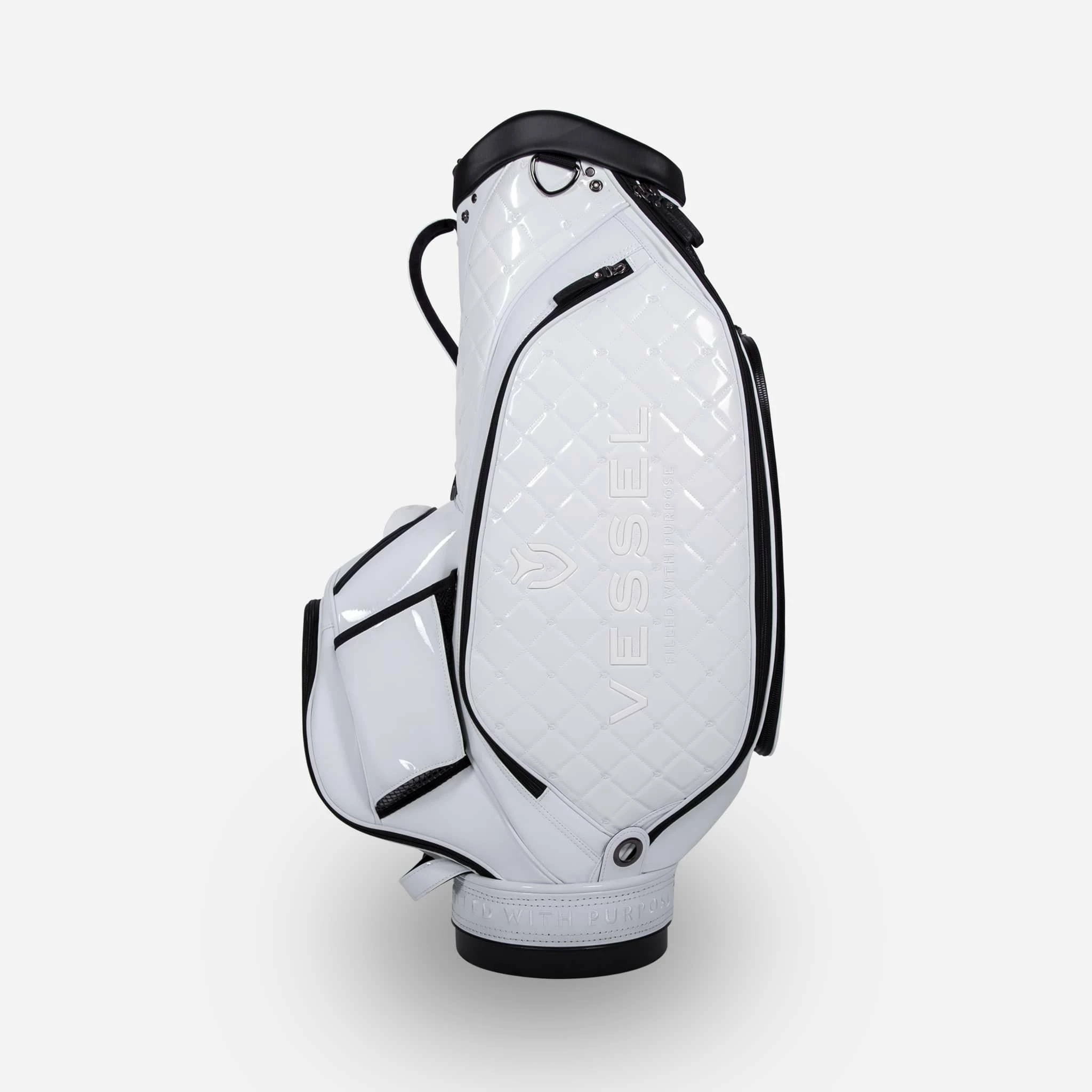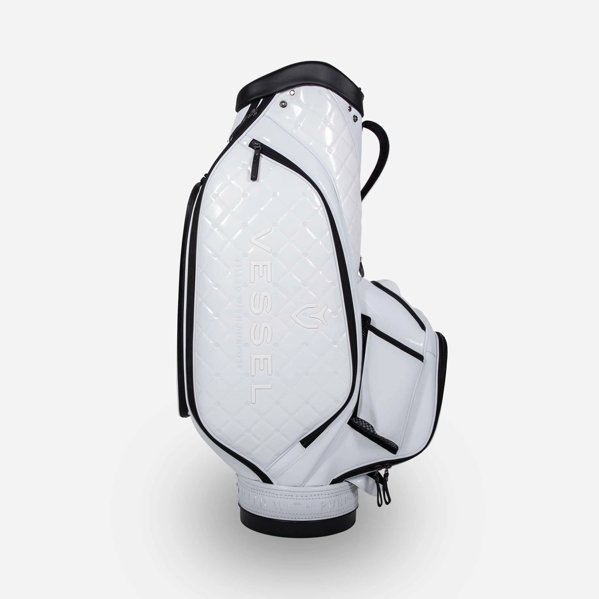 A one-of-a-kind Mini Staff Bag for a true VESSEL fan. This pro modeled mini staff bag features custom quilting with VESSEL logos on the side panels. The base is branded with our tagline, “Filled With Purpose”.