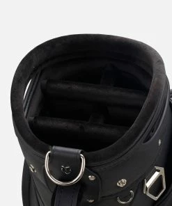 The Lux Midsize Staff bag has created a category all of its own in our collection as it boasts all the functionality of our top-level cart bags with the bold styling of our tour-proven staff bags. Intuitive organization, such as front facing pockets and dual personals pockets on either side of the bag allow for easy access while on a golf car, push cart, or trolley. With two dedicated water bottle sleeves and a thermal-lined cooler pocket, this midsize staff has ample room for beverages. This midsize staff bag is the culmination of our design team‚”ôs pursuit to bring together elegant styling with tour proven performance. Like our tour-trusted staff bags, this bag was built to last with features like a steel ring top, chrome hardware, and a sturdy front grab handle. Lux detailing includes premium leather touchpoints, quilted stitching, and microfiber-wrapped club dividers.
