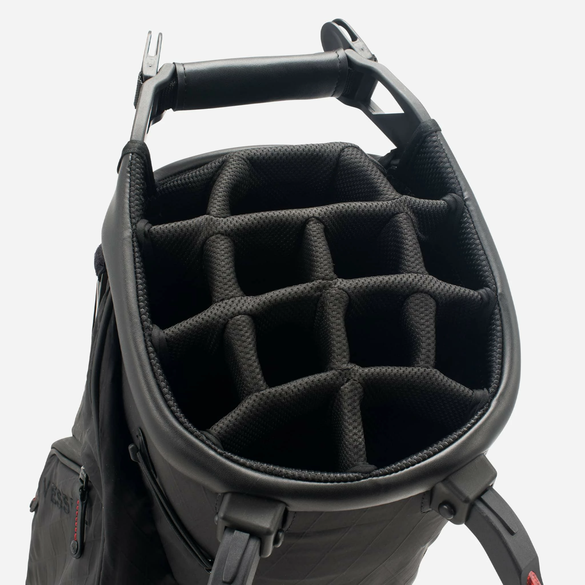 The Player III combines the proven performance of our flagship Player Stand, with elevated details, increased functionality and unmatched craftsmanship from top to bottom. Taking cues from the needs of tour players, the Player III features a larger top with a more intentional divider layout, magnetic water bottle pockets and a compression molded back panel for added comfort. Enjoy increased stability and balance with updated versions of our patented Rotator Base and EQ2 Strap. Intuitive organization such as an anti-microbial lined valuables pocket, interior lock pocket, magnetic rangefinder pocket and pen slot make it easy to organize every essential. The Player III is beautifully crafted from tour-grade synthetic leather for durability you can trust and topped off with lux details such as genuine leather touchpoints and plush mesh-lined dividers for luxury you can enjoy.